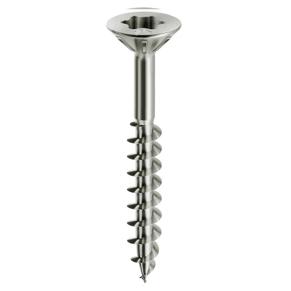 Pointe Ogive filetée jusqu’à son extrémité, elle garantit une prise sûre sans dérapage aussi sur bois melaminé et une pénétration graduelle et constante de la vis. L’on obtient ainsi une meilleure facilité de pénétration et, grâce à l’absence de points de discontinuité, l’on réduit les risques de fissuration des matériaux.